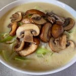 Deze soep is lekker als lunch, maar ook een mooi voorgerecht bij het kerstdiner. Wil je hem wat luxer, dan kun je de champignons ook vervangen door bospaddestoelen, cantharellen of oesterzwammen. Kook de paddestoelen niet mee, maar bak ze en voeg ze bij het serveren pas toe.