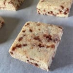 Warm de oven voor op 180C en bekleed een bakplaat met bakpapier. Haal dan het deeg uit de vriezer en werk zo nodig de vierkante vorm nog wat bij. Nu het deeg koud is heb je daar iets meer tijd voor. Snij het grote vierkante deegblok vervolgens met een scherp mes in 9 kleinere vierkanten en leg deze Woepies ten slotte goed verspreid op het bakpapier.